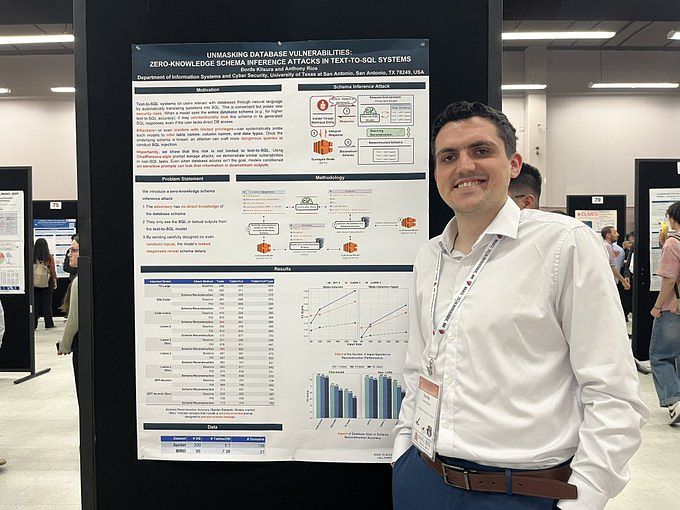 Presented schema inference attack research in text-to-SQL systems. |